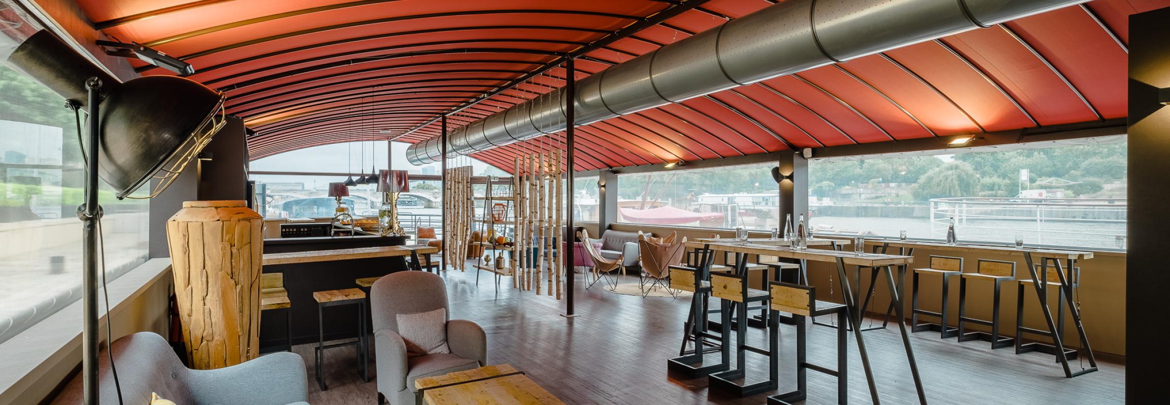 L’Atelier est comme un immense îlot de verre et de bois posé sur la Seine au Quai Henri IV : ouvert, spacieux et lumineux, son atmosphère est à la fois chic et décontractée. On y imagine aisément un vin d’honneur original ou encore le séminaire d’une jeune entreprise visionnaire. L’Atelier est le choix idéal pour vos événements professionnels et privés cherchant à favoriser le bien-être et l’échange.